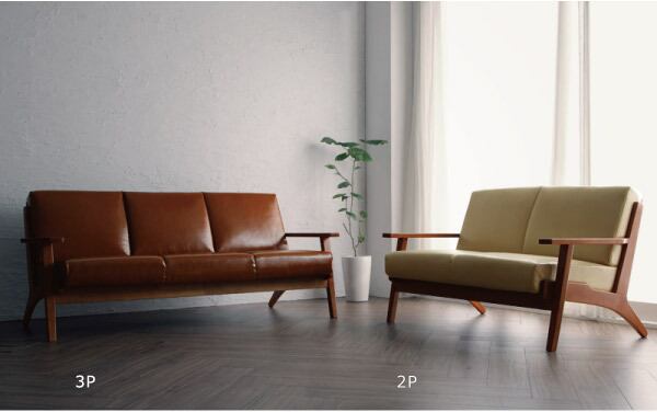 北欧デザイン木肘レザーソファ Stinger スティンガー: 3P