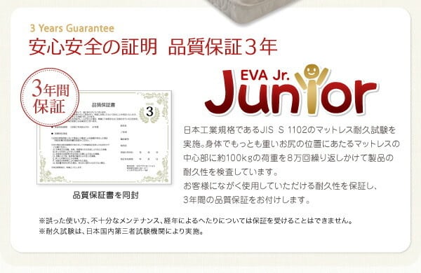 EVAジュニアマットレスシリーズはコイルを一から設計し、子どもの睡眠環境を考え開発した安眠マットレスです。