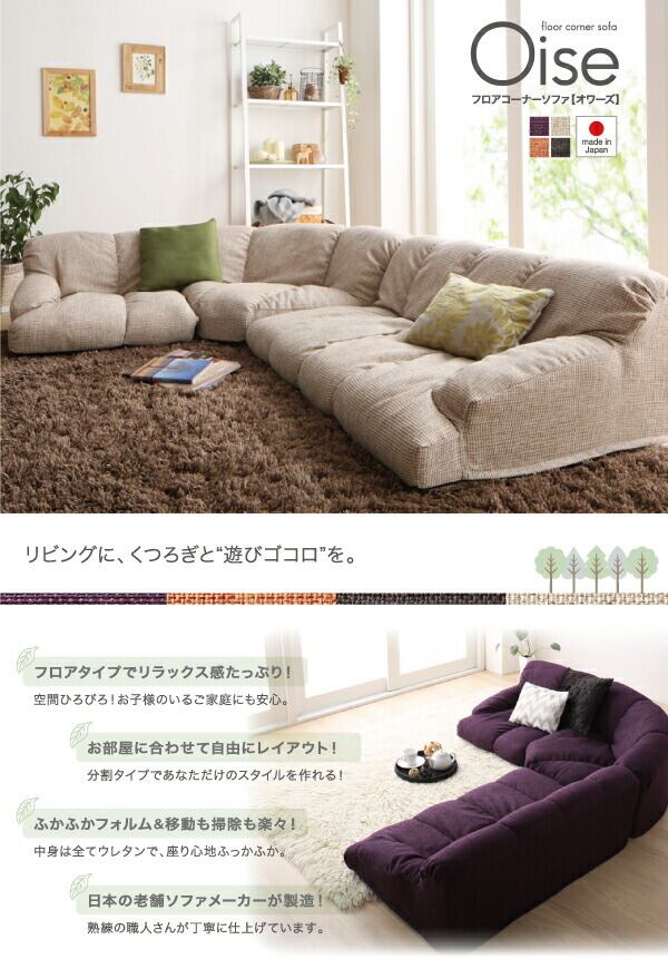 フロアコーナーソファ Oise オワーズ: ロータイプ
