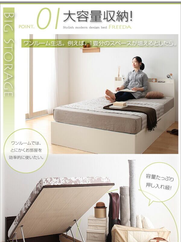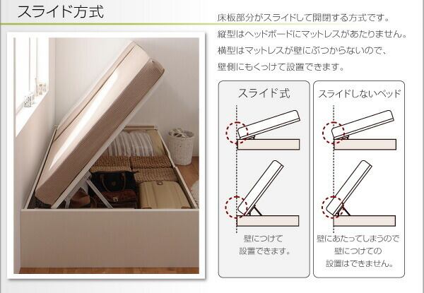 国産跳ね上げ収納ベッド Freeda フリーダ: セミダブル: 深さラージ:薄型スタンダードボンネル付: 組立設置サービス付き