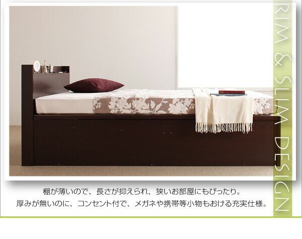 国産跳ね上げ収納ベッド Freeda フリーダ: セミシングル: 深さレギュラー:薄型プレミアムボンネル付