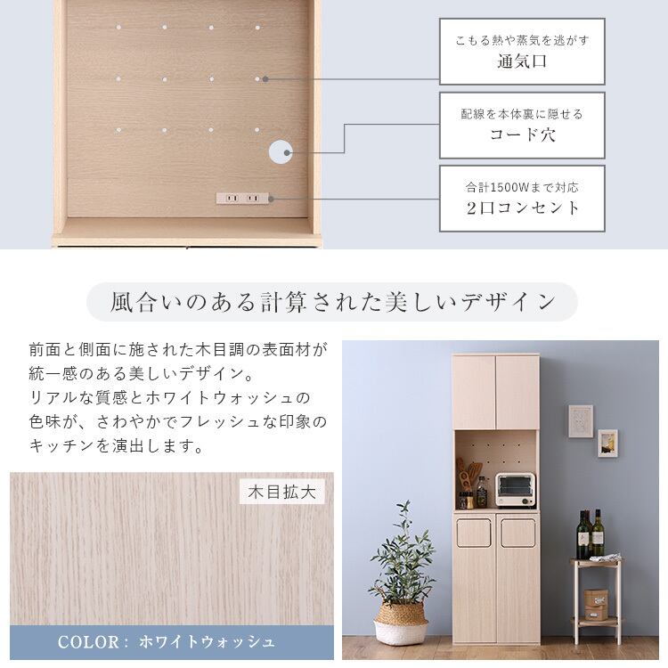 キッチン周りの収納や家電、ゴミ箱のスペースをこれ一台で有効活用できます。