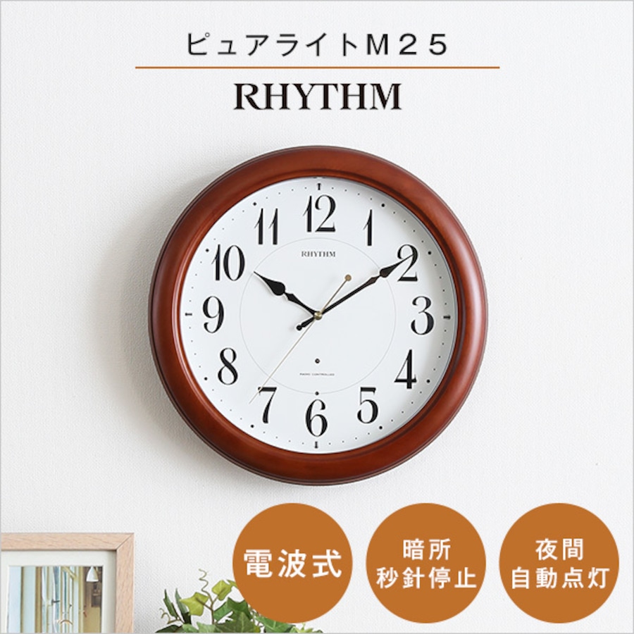 掛け時計(電波時計)暗所秒針停止・夜間自動点灯 メーカー保証1年|ピュアライトM25