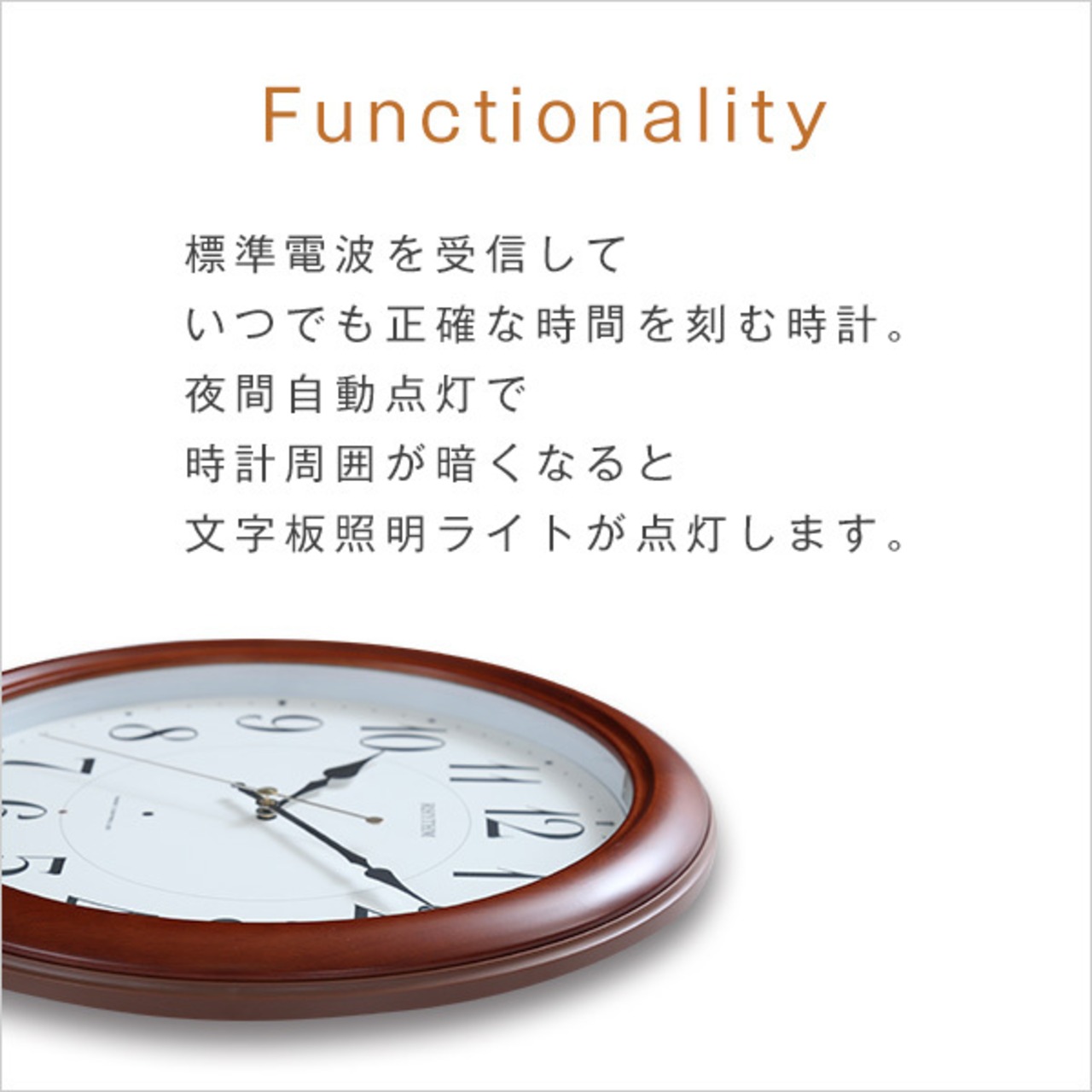 掛け時計(電波時計)暗所秒針停止・夜間自動点灯 メーカー保証1年