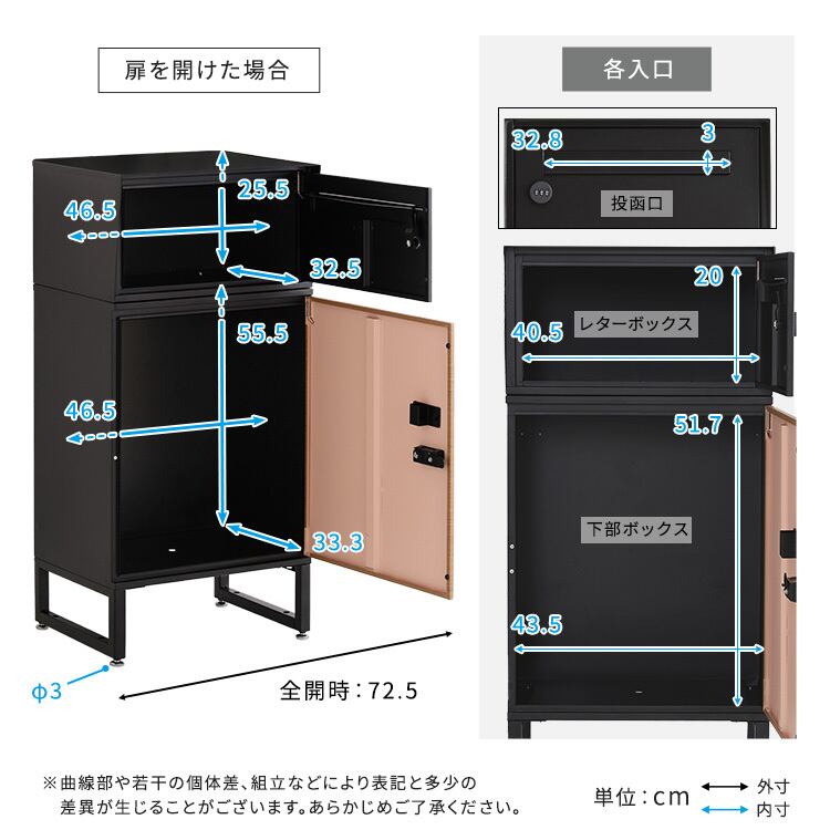 メールボックスも大容量なので、約3cmの厚みであれば受取できます。