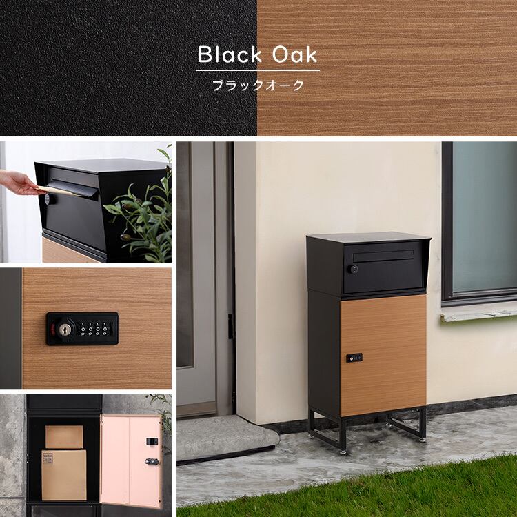ブラック×オーク色のデザインの宅配ボックスです。