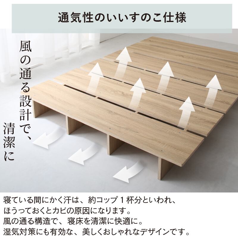 天然木調 すのこ ステージ ローベッド 暮らしにずっと寄り添う KASANE FLAT: セミダブル: ステージあり: 三つ折りウレタンマットレス