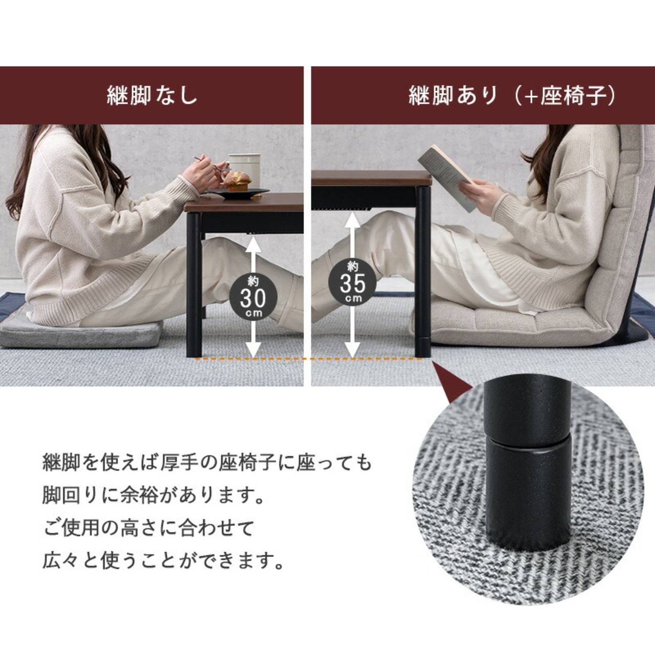 座椅子に合わせたり、ソファの高さに合わせたり、